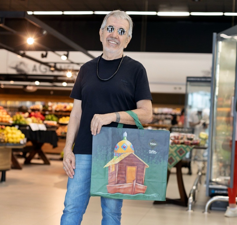 Pátio Gourmet lança ecobags com pinturas do artista Rui Machado