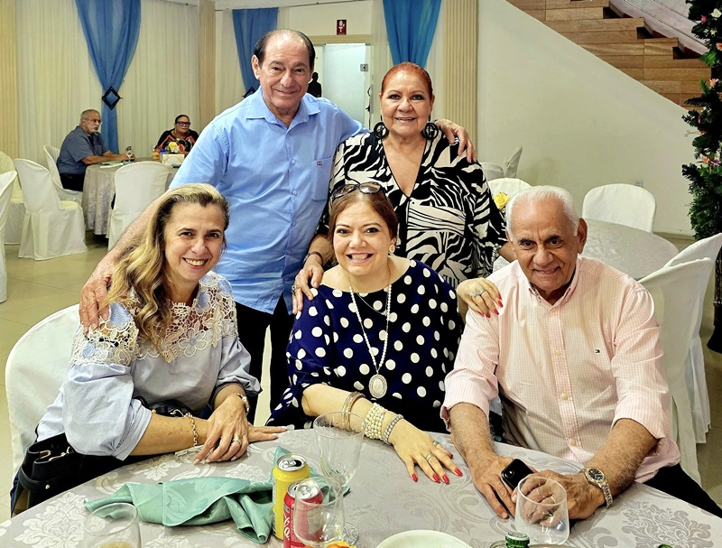 Márcia Matos Martins, seu sogro Alberto Martins, Adrianne Antony Gonçaves e Paulo Barateiro prestigiando o almoço de ontem da queridíssima Charufe Nasser, no clique com seus convidados