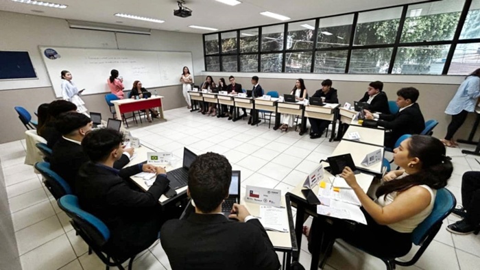 O Colégio Martha Falcão realiza a partir desta quarta-feira (23) a décima edição do Modelo de Organização das Nações Unidas Martha Falcão (MONUMF), um dos eventos mais esperados pelos alunos do Ensino Fundamental II e Médio da instituição. A simulação, que reproduz o funcionamento dos órgãos da ONU, visa capacitar os estudantes a debaterem e proporem soluções para complexos desafios globais, fomentando o pensamento crítico, a diplomacia e a oratória. Com abertura marcada para o dia 23 de julho, o MONUMF se estenderá pelos dias 24 e 25, com sessões das 8h às 16h30 em todos os dias. Este ano, os debates se concentrarão em três temas de grande relevância: o Comitê Histórico abordará a Guerra ao Terror nos anos 2000, a UNODC (Escritório das Nações Unidas sobre Drogas e Crime) discutirá o combate às redes internacionais de Narcotráfico, e o Congresso Nacional analisará os impactos do Agronegócio no Meio Ambiente Brasileiro. A diretora do Colégio Martha Falcão, Nelly Falcão de Souza, reforça a importância do protagonismo estudantil na organização do evento. “É inspirador ver o empenho e a dedicação dos nossos alunos na organização do MONUMF. Eles são os protagonistas, desde a escolha dos temas até a condução dos debates. Esta é uma experiência enriquecedora que os prepara não só para o ENEM e vestibulares, mas para serem cidadãos mais conscientes e atuantes no mundo”, afirma a diretora. Ela afirma que o MONUMF 2025 promete ser uma edição marcante, consolidando a tradição do Colégio Martha Falcão em promover uma educação que vai além da sala de aula, conectando os alunos com o mundo real e incentivando-os a serem agentes de mudança. Alunos da comissão organizadora do MONUMF convidaram para participar da abertura dos trabalhos, o deputado e egresso do Colégio Martha Falcão, Amom Mandel.