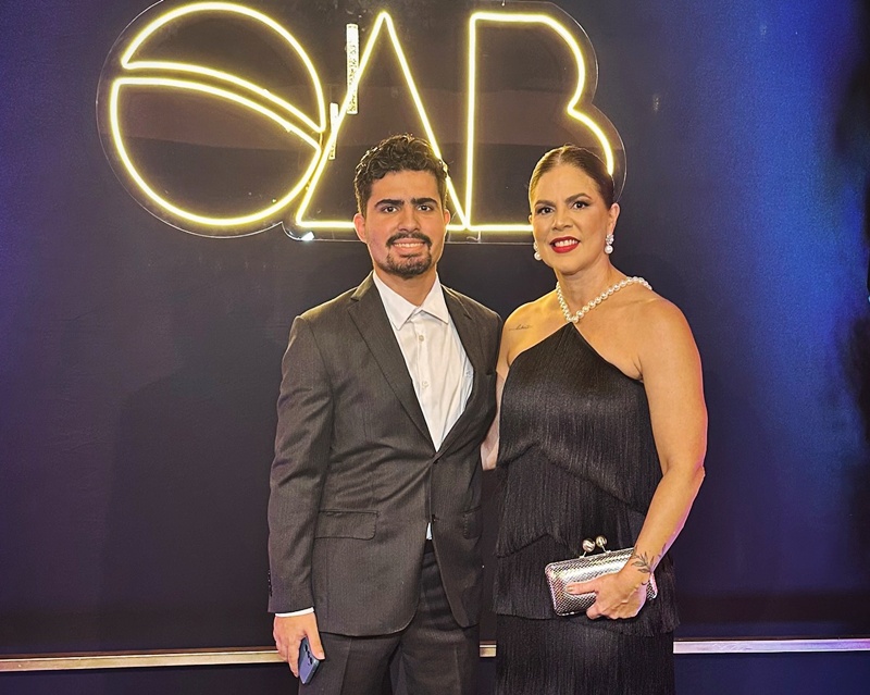 Sempre elegante, a advogada Gisélle Falcone feliz com o filho estudante de Direito, Flavinho Pascarelli, no Baile do Rubi, ocorrido no fim de semana no Diamond Convention Center, promoção anual da OAB-AM