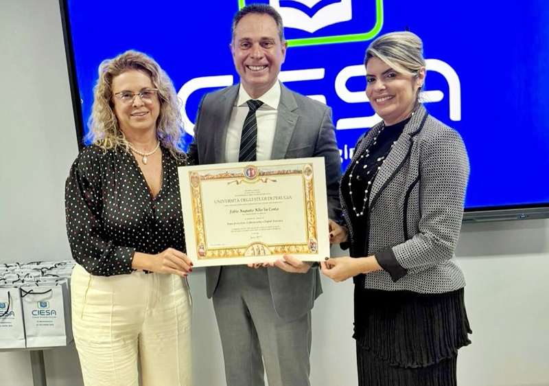 O advogado Fábio Augusto Alho muito feliz recebe título de Mestre em Direito pela Universidade Degli Studi di Perugia – Itália, uma das renomadas da Europa, entregue pelas professoras doutoras Claudia Antunes e Solange Holandavic. Fábio segue agora em busca do Doutorado. Parabéns