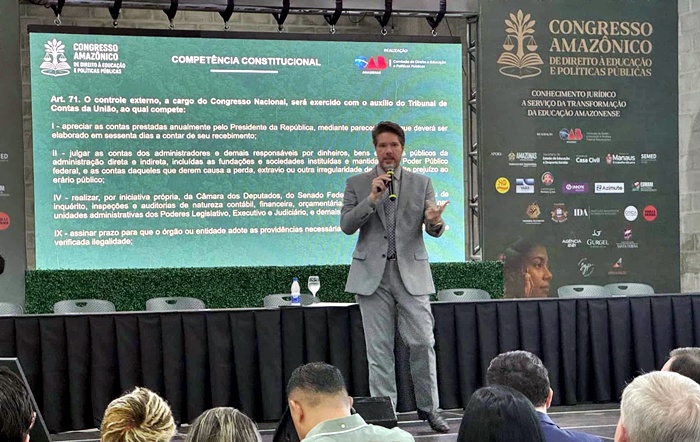O vice-presidente do Tribunal de Contas do Amazonas (TCE-AM), conselheiro Fabian Barbosa, foi o responsável pela palestra magna de abertura do I Congresso Amazônico de Direito à Educação e Políticas Públicas, realizado pela Ordem dos Advogados do Brasil Seccional Amazonas (OAB-AM), ocorrido ontem (25), no Centro de Convenções Vasco Vasques, em Manaus. Com o tema “Formas de Controle na Educação – Controle Externo e o Direito à Educação”, a palestra destacou a importância da atuação das cortes de contas na fiscalização e no fortalecimento das políticas públicas educacionais, sobretudo em um cenário que exige maior transparência, planejamento e eficiência dos investimentos na área. Antes de ingressar no Tribunal de Contas, Fabian Barbosa teve trajetória de destaque no campo da educação, tendo exercido o cargo de secretário de Estado da Educação do Amazonas, experiência que reforça sua atuação atual como conselheiro e gestor público. Ao conduzir a palestra magna, ele compartilhou reflexões sobre os instrumentos de fiscalização disponíveis, o papel do controle externo na garantia de direitos e a necessidade de integração entre órgãos de Estado e sociedade civil para assegurar uma educação de qualidade. Promovido pela OAB-AM, por meio da Comissão de Direito à Educação e Políticas Públicas Educacionais, o congresso reúne, nos dias 25 e 26 de agosto, especialistas, autoridades, pesquisadores, gestores e representantes da sociedade civil para debater desafios e soluções para a educação na região amazônica. Com uma programação extensa, o evento conta com palestras, painéis temáticos, oficinas e rodas de conversa sobre temas como políticas públicas inclusivas, financiamento da educação, permanência de povos indígenas, quilombolas e ribeirinhos nas universidades, acessibilidade e o papel da comunicação e da tecnologia na educação. Muito bom!