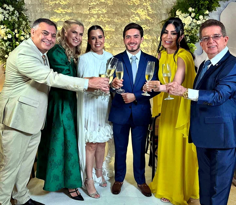 Os noivos do fim de semana Camila Matos Martins com seus pais, Sérgio Henrique Martins-Márcia Matos Martins e José Wanderley Dallas Rei Dias-Thea Oliveira, em foto para a posteridade