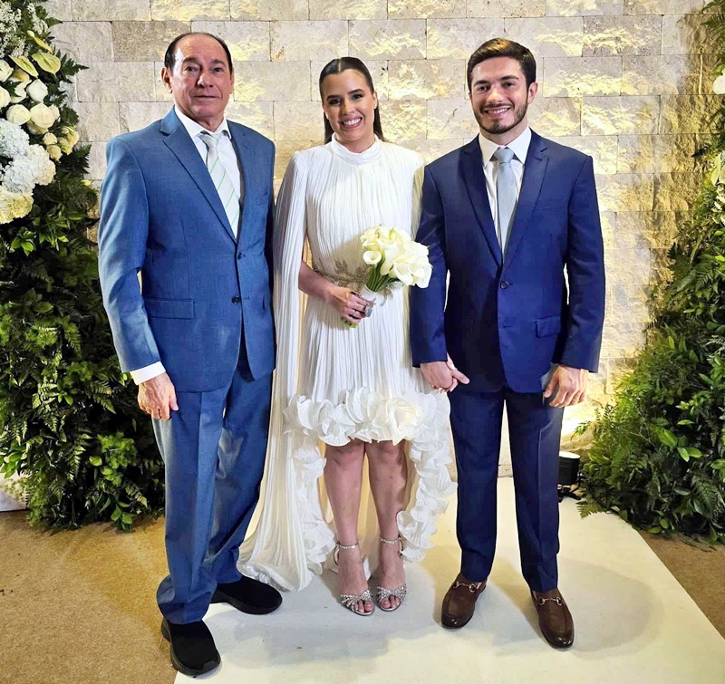No casamente civil da neta primogênita, Camila Matos Martins com David Dallas ocorrido no fim de semana, o avô da noiva, Alberto Martins é só emoção e felicidade