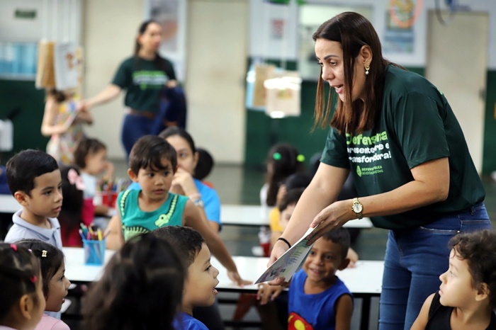 Para celebrar a semana do Dia das Crianças e incentivar a educação em direitos desde a primeira infância, a Defensoria Pública do Estado do Amazonas (DPE-AM), por meio da Escola Superior da Defensoria Pública (Esudpam), realizou uma ação especial no Centro Municipal de Educação Infantil (CMEI) Maria Clara Machado, localizado no bairro Petrópolis, zona sul de Manaus. A atividade aconteceu ontem (08) e envolveu cerca de 80 alunos do 1º e 2º período, com idades entre 4 e 6 anos. O encontro transformou o ambiente escolar em um espaço de aprendizado e diversão. Com contação de histórias, pintura e brincadeiras, as crianças conheceram, de forma leve e interativa, os direitos que possuem e o papel da Defensoria Pública na defesa da cidadania. Segundo a defensora pública e coordenadora da Esudpam, Petra Sofia, o momento representa uma forma de aproximar a instituição das escolas e contribuir para a formação cidadã desde cedo. “Estamos trazendo um pouco da Defensoria para as escolas. É um momento de alegria, mas também de aprendizado, para que as crianças já conheçam a Defensoria e saibam que é um lugar onde podem contar. Nosso objetivo é estar presente desde cedo na formação delas, mostrando que o papai e a mamãe podem procurar a Defensoria quando precisarem resolver algum problema”, afirmou. A ação integra o projeto “Defensoria nas Escolas”, que tradicionalmente atende estudantes do Ensino Médio, mas tem sido adaptado para o público infantil. Nessa versão, o foco é o aprendizado por meio do lúdico, com atividades que estimulam a imaginação e a compreensão das noções de justiça, solidariedade e respeito. Muito bom!