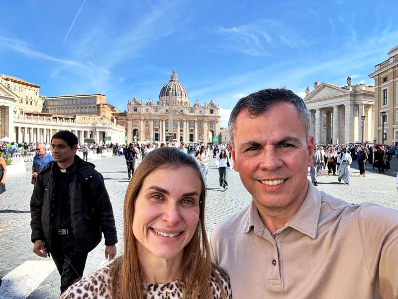Sempre juntos e felizes. o defensor público Fernando Figueiredo Prestes e sua amada Gimol, aproveitaram sua viagem a Roma para visitar a Igreja de São Pedro, no Vaticano. Maravilha