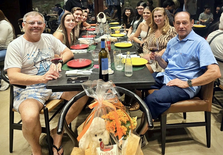 Meu amigo estimado, o empresário Alberto Martins reuniu ontem toda a família no restaurante Moquém do Banzeiro, para um almoço de boas-vindas para sua filha primogênita Camila e seu marido David Dias que voltaram de romântica lua de mel. Coisa boa