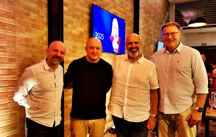 Os diretores da Varanda Multiagência com Maurício Santos, gerente de exibição da Rede Globo e o CEO da Rede Amazônica,