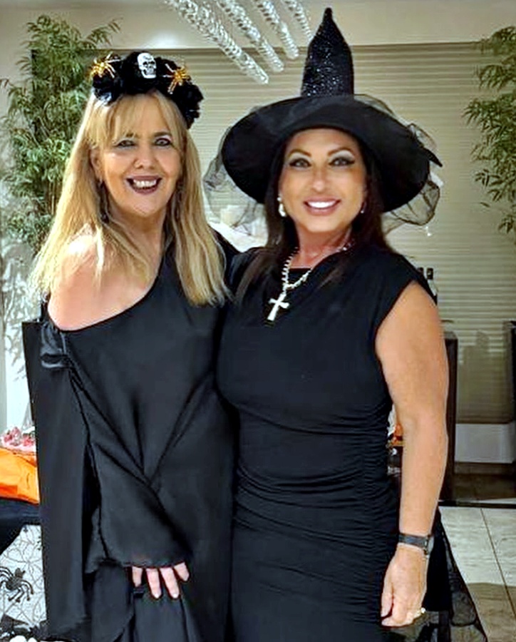 As amigas Leda Maria Magnani e Denise Macedo em animada festa de Halloween que movimentou a quinta-feira com muitos vampiros e bruxas. Finas