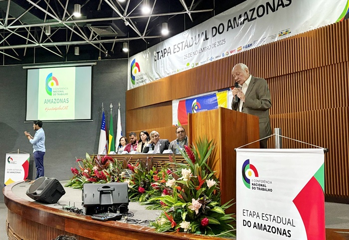 A II Conferência Nacional do Trabalho – Etapa Amazonas reuniu na manhã de ontem (25), representantes do governo federal, estadual e municipal, além de lideranças de trabalhadores e do setor produtivo. A conferência, aconteceu no no Auditório Profº Arivaldo Silveira Fontes do Senai estabeleceu o Amazonas como protagonista no debate nacional sobre trabalho decente, transição tecnológica e políticas públicas para o futuro do emprego. A abertura contou com a apresentação cultural do projeto Curumim na Lata, iniciativa socioambiental que emocionou o público com ritmos regionais e mensagens de preservação amazônica. Em seguida, o presidente da Federação das Indústrias do Estado do Amazonas (Fieam), Antonio Silva, anfitrião institucional, ressaltou o compromisso do setor produtivo com o desenvolvimento do Estado e a centralidade do diálogo para a construção de políticas eficazes. “Nós temos que valorizar as pessoas que fazem o trabalho, que fazem o Amazonas acontecer e que constroem o Brasil no dia a dia”, afirmou. Ele destacou ainda que “abrir espaço para conversar é essencial”, reforçando que somente por meio do diálogo é possível avançar em medidas que atendam às demandas de trabalhadores e empresas. Para ele, o crescimento econômico só se sustenta quando acompanhado de respeito e dignidade: “A indústria do Amazonas tem compromisso com o desenvolvimento e com o bem-estar das pessoas. Não existe crescimento econômico sem respeito ao trabalhador”. As propostas aprovadas na etapa estadual irão compor o documento que será levado à Conferência Nacional, marcada para março de 2026. A etapa amazônica reforçou que, em um estado de dimensões continentais, com forte dependência da Zona Franca de Manaus e realidades distintas entre áreas urbanas, ribeirinhas e rurais, políticas públicas de emprego precisam ser pensadas considerando territorialidade, inclusão e sustentabilidade. Entre os nomes presentes estavam o secretário executivo do Trabalho e Empreendedorismo do Governo do Amazonas, Henry Vieira, o diretor do Sine Manaus, Pedro Lima, a presidente da Central dos Trabalhadores e Trabalhadoras do Brasil (CTB-AM), Ana Cristina, gerente da Tutiplast, Mariana Barrella e o vereador José Ricardo.