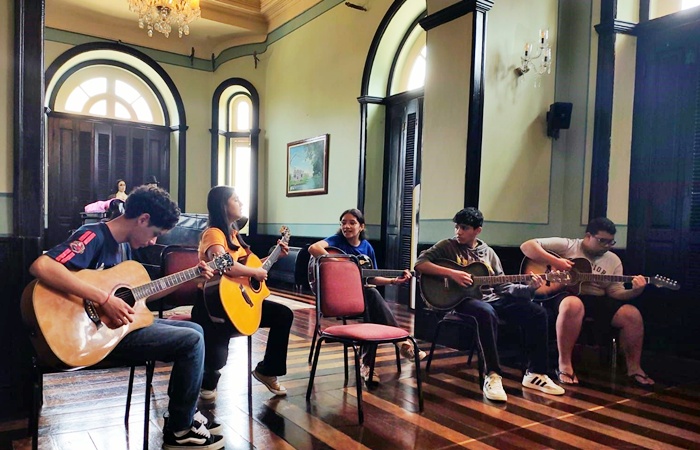 A música vai tomar conta do Salão Nobre do Palácio Rio Negro nesta quarta-feira (26, às 19h30, com a realização do Recital de Violão da RSCA Guitar Class. O concerto, gratuito, promete destacar o talento de estudantes e intérpretes da música instrumental, reforçando seu compromisso com a formação artística e o incentivo à cultura. Promovido pelo Governo do Amazonas, via Secretaria de Estado de Cultura e Economia Criativa, o recital oferece ao público a oportunidade de apreciar apresentações de diferentes níveis e estilos, valorizando o aprendizado musical e celebrando o violão como instrumento central da produção artística amazonense. Segundo a idealizadora do recital, a professora Ralyssa Araújo, o concerto é realização de um sonho construído ao longo de seus três anos de experiência como docente. Ralyssa explica que, desde a confirmação da data, os alunos estão há mais de um mês em preparação: “Tenho alunos que começaram a aprender violão em abril deste ano, então é pouco tempo, e mesmo assim estão muito dedicados. Também convidei ex-alunos, alguns com um ano e meio e outros com três anos de prática, que serão nossos solistas, além de uma pianista convidada para tornar esse momento ainda mais especial”, completou. A iniciativa integra agenda de atividades culturais realizadas no Centro Cultural Palácio Rio Negro, um dos principais patrimônios históricos do Estado. Aberto ao público, o recital busca aproximar a comunidade das ações culturais, estimulando a participação de famílias, estudantes e admiradores da música.