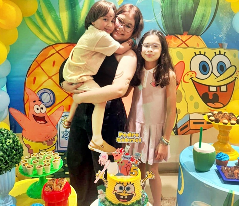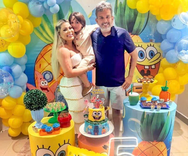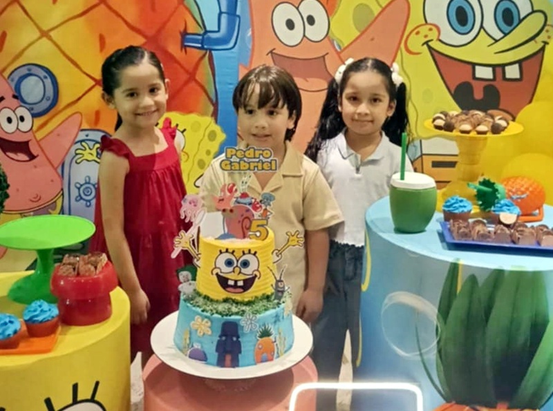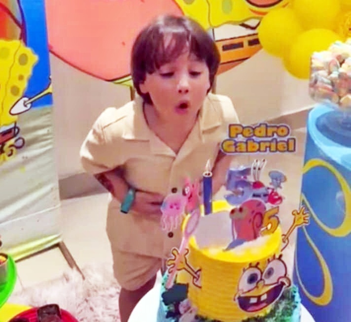 Com uma bela celebração inspirada no personagem Bob Esponja, meu amado bisneto Pedro Gabriel de Aguiar Neves festejou no sábado, a chegada gloriosa de seus cinco anos redondinhos. A festança rolou na Praça dos Amigos, no São Jorge com todos os amiguinhos do aniversariante, inclusive, com a presença de seus colegas de classe do Centro Educacional Pinocchio, onde Pedro Gabriel estuda. A animação ficou por conta do palhaço Cipó e sua trupe, com muitas brincadeiras para a turminha. Gente miúda e adulta fizeram a alegria do encontro com comidinhas deliciosas preparadas pela avó do aniversariante. Pedrinho estava feliz. Ganhou muitos presentes e a certeza de ser querido pelos convidados. Ano que vem tem a festa dos seis anos. Até lá!