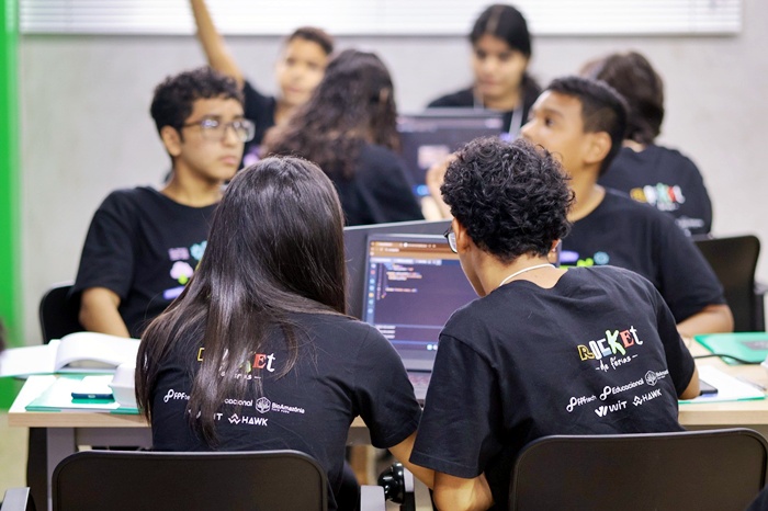 A FPFtech (Fundação Desembargador Paulo Feitoza) realizou mais uma edição do Rocket de Férias, programa que convida crianças e adolescentes indicados por colaboradores da instituição para uma imersão de uma semana na cultura da programação e da inovação. A iniciativa, realizada durante o fim das férias escolares, reuniu mais de 60 participantes com idades entre 10 e 17 anos, proporcionando um primeiro contato com lógica de programação, algoritmos e conceitos tecnológicos em um ambiente educacional. Para o professor Pedro Brantis, analista de sistemas e um dos instrutores do projeto, a experiência de ensinar jovens foi singular. “É muito incrível passar esse conteúdo para eles, porque tudo para eles é muito novo e eles veem aquilo como algo inovador. A gente consegue ver o brilho no fundo dos olhos deles quando eles entendem um novo conteúdo”, afirmou. Segundo ele, desenvolver lógica de programação vai além da área técnica. “Uma vez que você desenvolve lógica de programação, você desenvolve lógica para qualquer outra área”. Brantis considerou o programa uma experiência enriquecedora tanto para os alunos quanto para os instrutores. Segundo Ana Ferreira, Gerente de Pessoas da FPFtech, o Rocket de Férias representa uma combinação de aprendizado e voluntariado. “É o momento em que a gente oportuniza para os filhos dos colaboradores, parentes e amigos, em que eles possam aprender sobre programação, sobre tecnologia”, explicou. Ferreira ressaltou o engajamento dos colaboradores como instrutores voluntários e a importância de oferecer conhecimento de forma lúdica durante as férias. “Eles aprendem de uma forma, brincando mesmo, porque conhecimento nunca é demais. Já estamos na terceira edição do Rocket de Férias e ficamos muito felizes de receber esse público que é muito importante para o futuro”, reforçou Ana. Outro instrutor presente no programa, Fabrício Batalha, Product Owner na FPFtech, ressaltou a importância da iniciativa para a formação de futuros profissionais da tecnologia. “Essa oportunidade que foi dada é muito importante pra todo mundo que tá querendo entrar na área da tecnologia, conhecer um pouco desse mundo da inovação. Eu creio que hoje é o pontapé inicial de todos esses jovens que vieram aqui nesse lugar”, afirmou. Batalha demonstrou otimismo quanto ao potencial dos participantes. “Tenho absoluta certeza que daqui sairão muitas pessoas para a nossa área de tecnologia, muitas pessoas notáveis”, salientou. É por aí!