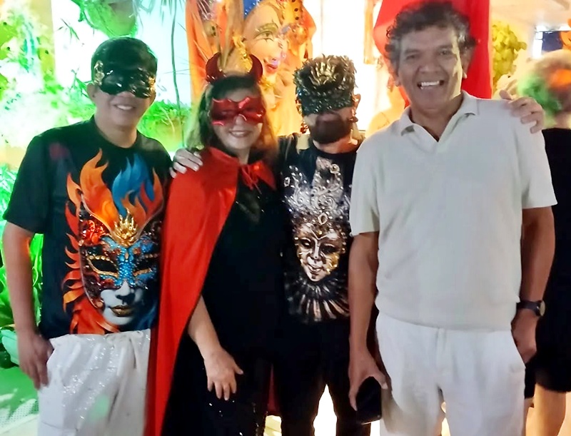 Este colunista acertou em cheio quando escolheu a Segunda-feira de Carnaval para realizar a esperada “Festa à Fantasia”, inspirada nos saudosos bailes do Atlético Rio Negro quando a indumentária era obrigatória para as mulheres. E assim foi, o baile foi um sucesso, com sereias, piratas, deusas, padres, ciganas e outras fantasias que fizeram o maior sucesso na noite embalada pelo extraordinário músico Randerson Couto, um artista que é uma banda completa. Ele, simplesmente arrasou com sua playlist primorosa. A decoração da nossa Praça dos Amigos foi invadida por uma profusão de máscaras nos mais variados tamanhos, um trabalho primoroso do produtor Luppi Pinheiro e do decorador Mario Polari e sua equipe, simplesmente bombou geral. Coroando a noite, um jantar supimpa preparado pela banqueteira Cleide Sousa, com direito a entradas deliciosas. A Cleide arrasa no quesito gostosura. A noite, amena, sem chuva, colaborou para o sucesso do baile que rolou até às 2 horas da madrugada de terça-feira com gosto de quero mais. Deste espaço, quero agradecer aos meus patrocinadores pela ajuda primordial. O agradecimento se estende, também, para os amigos que me prestigiara mais uma vez, fazendo da promoção um sucesso absoluto. Ano que vem, tem mais, se Deus quiser. Até lá