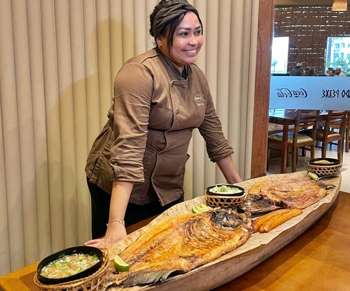 Outro prato que conquistou os paladares foi a Sagrada Matrinxã, assada na crosta de sal, tradição de povos antigos. Também teve opções de peixes recheados com ingredientes regionais, como farinha do Uarini e banana. A chef de cozinha, Marie Melo, explicou que a técnica da crosta de sal é essencial para preservar a suculência e o sabor do peixe na preparação da Sagrada Matrinxã. Segundo ela, a prática tem origem histórica. Sobre a matrinxã recheada, a chef reforçou a ligação do prato com a cultura local e a reunião familiar típica de períodos como a Semana Santa, que se aproxima. “A matrinxã é a rainha dos rios, assim como o tambaqui e o pirarucu são os reis. Preparada com carinho, desde a retirada das espinhas até a textura crocante, ela traz conforto e memória afetiva, como aquelas refeições em família que marcam a Semana Santa”, disse. O menu contou ainda com a pimenta Cumari, desenvolvida pelo grupo para realçar os sabores amazônicos sem sobrepor o prato. A experiência foi finalizada com sobremesas regionais, como a Taça Amazônica e preparações à base de banana com sorvete, além dos sucos naturais. O restaurante Sagrado Peixe fica localizado na Avenida Cosme Ferreira, bairro Coroado, zona Leste de Manaus, dentro da área do Supermercado Vitória.